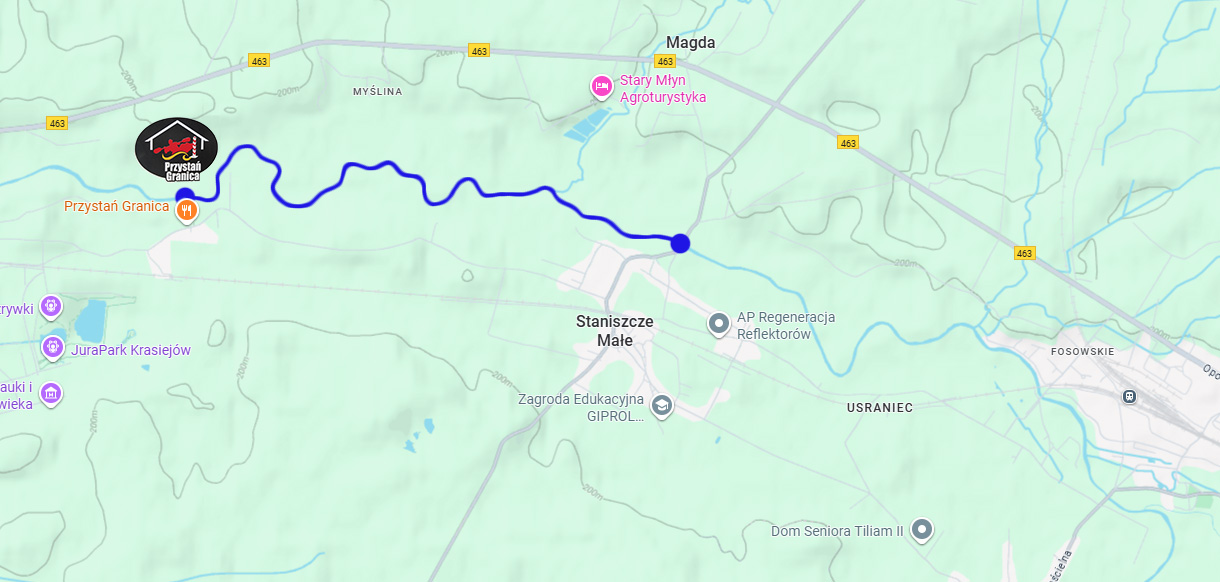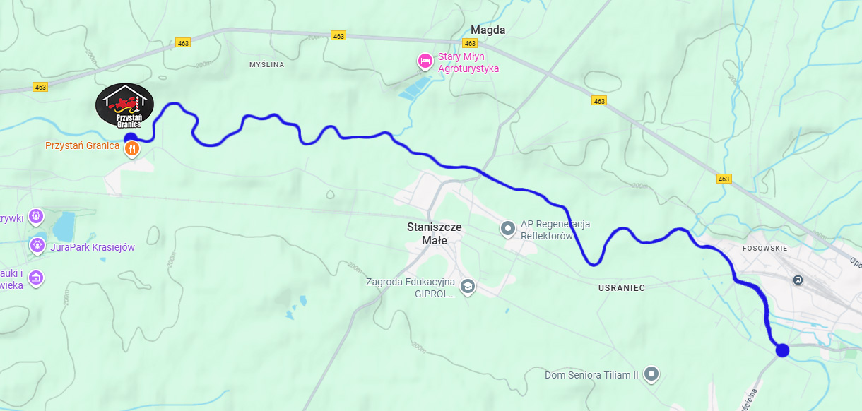 Idealna trasa rodzinna, proponowana także dla rodzin z małymi dziećmi. Aktywna, bezpieczna, dostarczająca wystarczająco dużo emocji szczególnie dla kajakarzy początkujących pozwoli w szybkim czasie na dotarcie do przystani Granica.